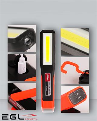 > EGL MIKNATISLI TAMİRCİ EL FENERİ LED ŞARJLI 3 MODLU